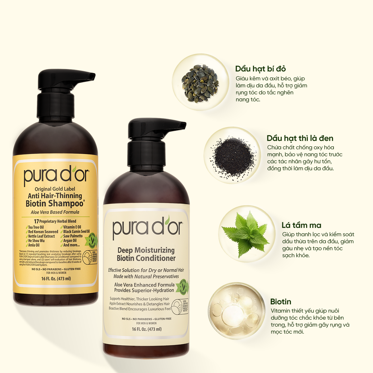Combo 3 Bước Dầu Gội, Dầu Xả, Giảm Rụng Tóc Organic Pura D'or Biotin Gold Label 473ML | Chăm Sóc Tóc, Chăm Sóc Da Đầu, Dưỡng Tóc, Hỗ Trợ Mọc Tóc