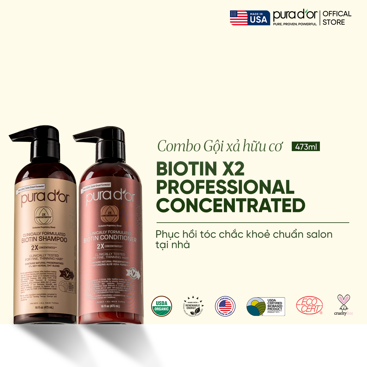 Combo Gội - Xả Pura D'or Biotin X2 Concentrated Giúp Tóc Dày, Khỏe Mạnh và Sáng Bóng Hơn 473ml