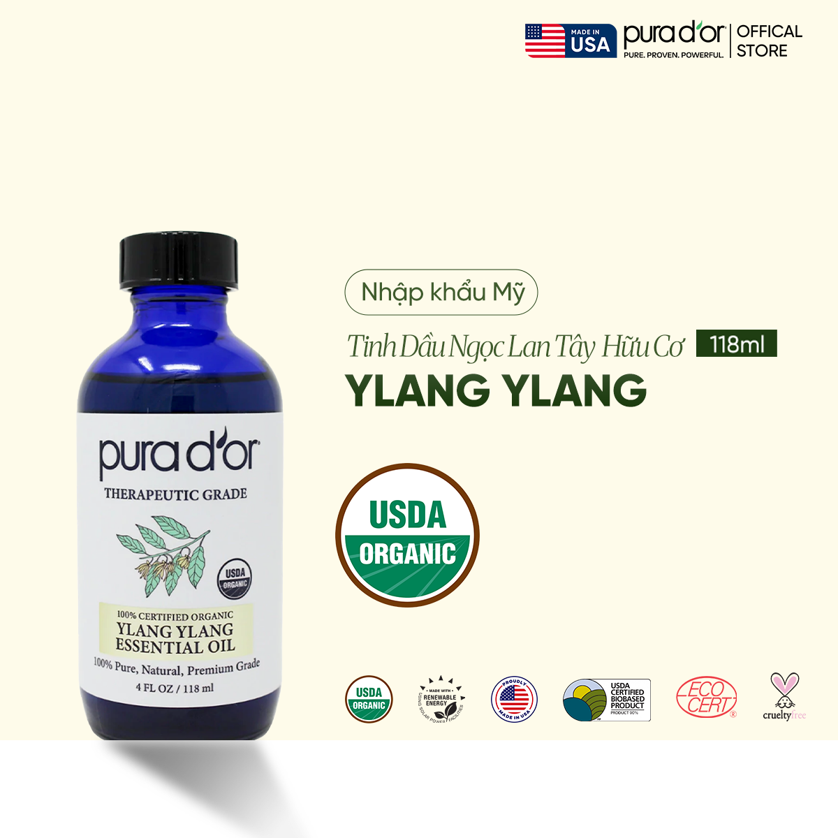 Tinh Dầu Hoa Ngọc Lan Tây hữu cơ PURA D’OR Therapeutic Grade Ylang Ylang Essential Oil
