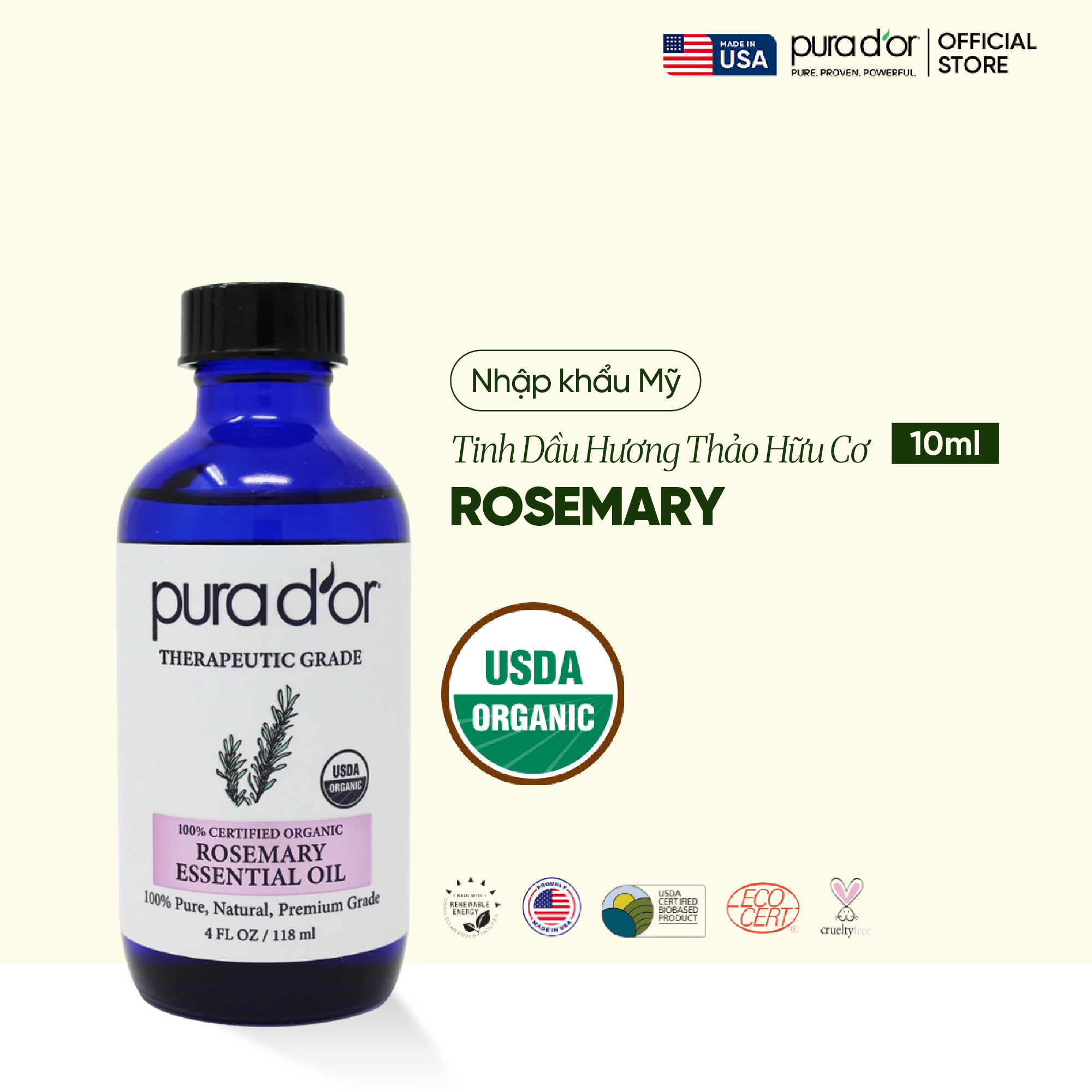 Tinh Dầu Hương Thảo Hữu Cơ PURA D’OR Therapeutic Grade Rosemary Essential Oil 118ML