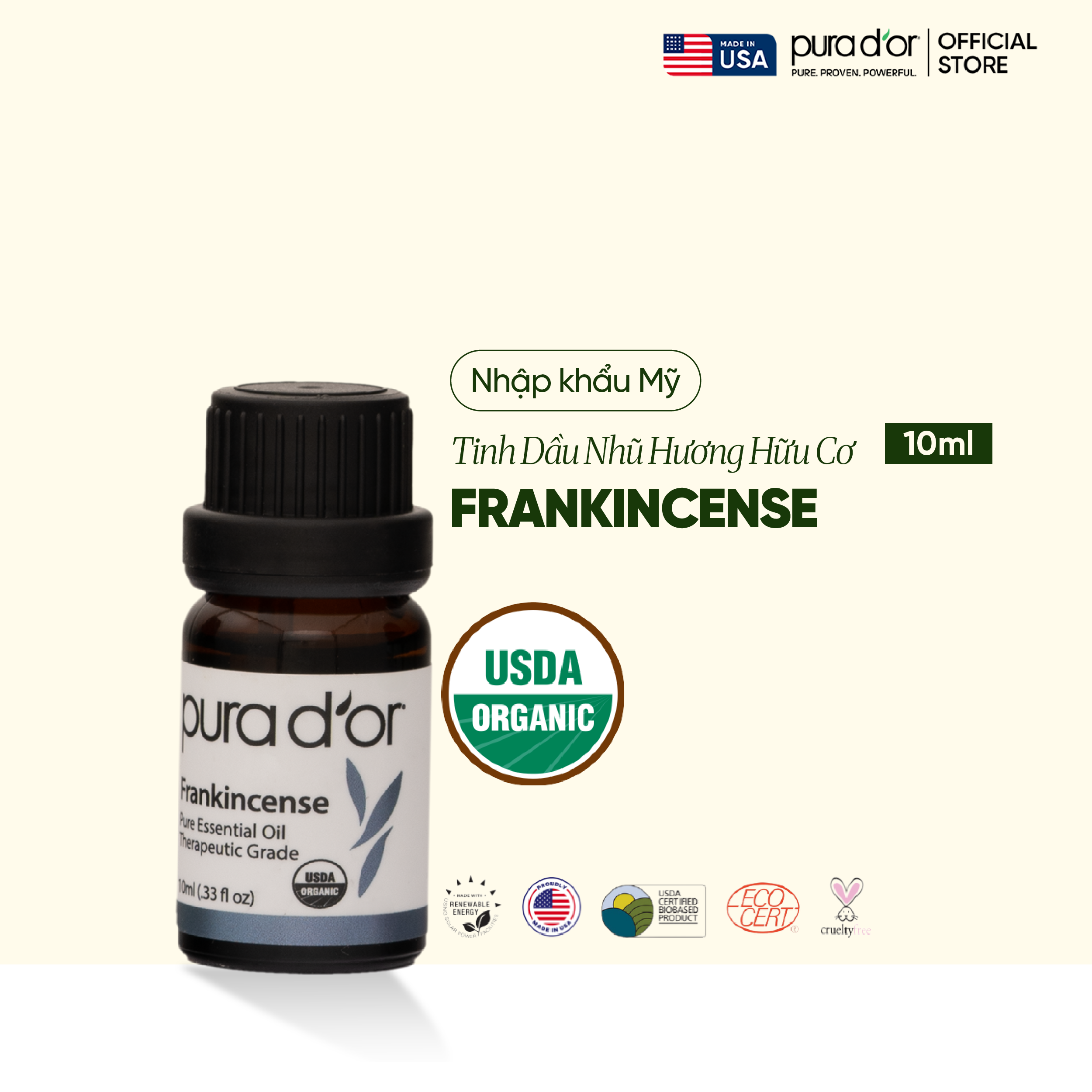 Tinh Dầu Nhũ Hương Hữu Cơ PURA D’OR Therapeutic Grade Frankincense Essential Oil 10ML
